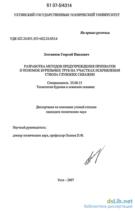 Актуальность темы. Прихваты бурильных колонн и вызванные ими поломки бурильных труб всегда сопровождали и, вероятнее всего, будут и в дальнейшем сопровождать строительство глубоких скважин. Из всего многообразия прихватов большая часть прямо или косвенно связана с желобообразованием заклинивание труб и прихваты под действием перепада давления (диффернци-альные прихваты)