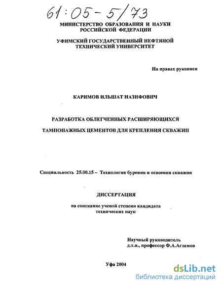 4 Исследования и разработка облегченных расширяющихся тампонажных цементов для цементирования скважин в сложных геологи ческих условиях 85