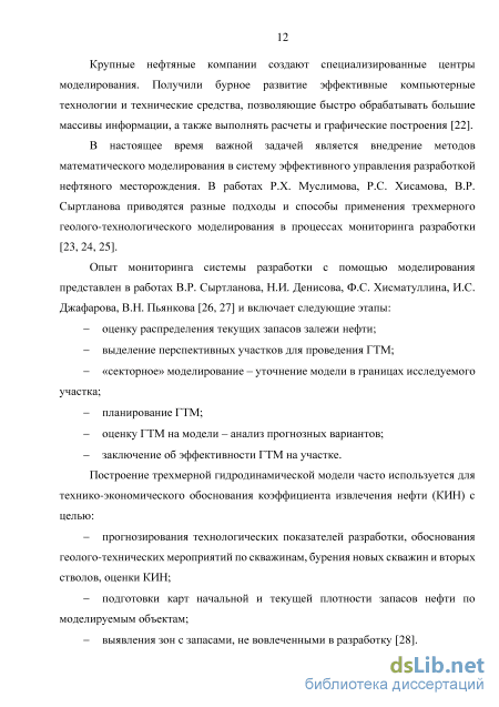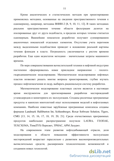 Этапы развитие моделирования нефтяных залежей, создание и эксплуатация ПДГТМ представлены в работах Шахвердиева А.Х., Максимова М.М., Рыбицкой Л.П., Watson А.Т., Sienfeld J.H., Gavalas G.R., Woo P.T. и др. В них опубликованы результаты применения методов и мероприятий по регулированию разработки нефтяного месторождения на основе моделирования: - изменения режимов эксплуатации добывающих скважин (увеличение или ограничение отборов жидкости, отключение высокообводненных скважин, форсированный отбор жидкости, периодическое изменение отборов и др.); - изменения режимов эксплуатации нагнетательных скважин (увеличение или ограничение закачки рабочего агента, перераспределение закачки рабочего агента по скважинам, внедрение циклической закачки, применение повышенного давления нагнетания и др.); - увеличения продуктивности добывающих скважин (дополнительная перфорация, различные методы воздействия на призабойную зону скважин, гидроразрыв пласта и др.); - изоляции или ограничение притока попутно добываемой воды в скважинах (цементные заливки, создание экранов, применение химреагентов и т.д.); - изменения физико-химических свойств добываемой жидкости (нефти, воды) в пластовых и поверхностных условиях в процессе разработки; - оценки эффективности осуществляемых мероприятий по регулированию разработки [34]. Анализ развития гидродинамического моделирования и возможности современных программных комплексов показал увеличение уровня автоматизации и гибкости при прогнозировании системы разработки нефтяной залежи. Появились возможности задания многоуровневых алгоритмов для регулирования режимов работы скважин в зависимости от изменения состояния разработки. Методы расчета прогнозных вариантов эксплуатации нефтяных месторождений и эффективности систем разработки приведены в работах [35, 36, 37].