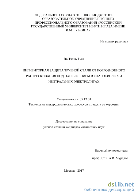 Апробация работы. Материалы диссертации были представлены на VI Международной научно-техническая конференции «Газотранспортные системы: настоящее и будущее (GTS-2015)» 2015 г., М. ПАО «Газпром»; III Международной конференции «Фундаментальные аспекты коррозионного материаловедения и защиты металлов от коррозии», посвященной 115-летию со дня рождения члена-корреспондента АН СССР Г.В. Акимова 2016 г; Юбилейной 70-й Международной молодежной научной конференции "Нефть и газ - 2016", приуроченной к III Национальному нефтегазовому форуму. Москва, 2016 г; 71-й Международной молодежной научной конференции «Нефть и газ – 2017» . Москва, 2017г.