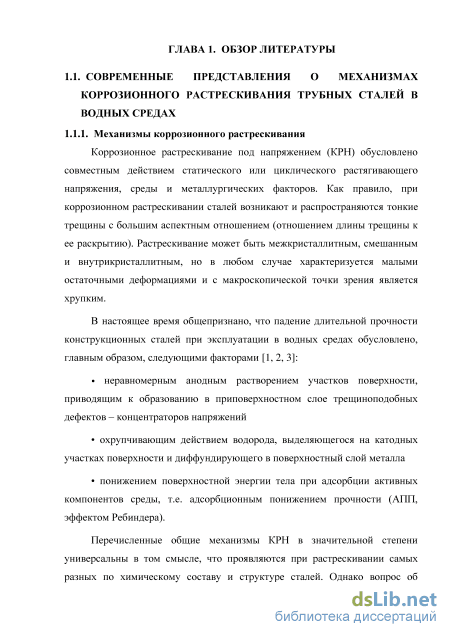 1.1. Современные представления о механизмах коррозионного растрескивания трубных сталей в водных средах 9