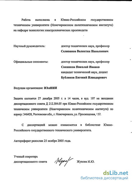 Диссертационная работа выполнена в соответствии с планом научно-исследовательских работ ЮРГТУ (НПИ) (Государственная регистрация № 01870033677), в рамках научного направления ЮРГТУ (НПИ) «Гальванотехника и электрохимическая обработка металлов» на 1996-2000 г.г., она являлась составной частью темы 2.94 «Теория и технология электроосаждения металлов и их сплавов. Закономерности, моделирование и оптимизация» и научного направления ЮРГТУ (НПИ) «Гальванотехника и трибоэлектрохимия».