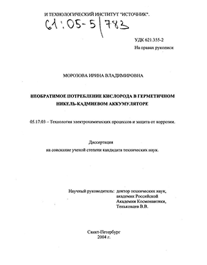 Таким образом, изучение процессов необратимого потребления кислорода, происходящих на сроке службы в герметичных никель-кадмиевых аккумуляторах, является весьма актуальной проблемой.