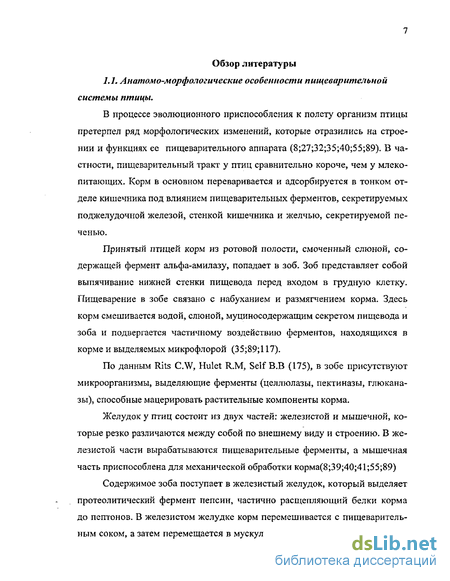 1.1. Анатомо-физиологические особенности пищеварительной системы птицы 7
