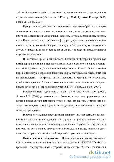 Важным фактором повышения эффективности производства, достижения генетически обусловленного потенциала продуктивности птицы является организация рационального, научно обоснованного нормированного кормления. Необходимо, чтобы все жизненно важные элементы питания поступали с рационом в необходимом количестве и в оптимальном соотношении, при этом большое значение в полноценном кормлении птицы имеют жиры и жирные кислоты (Матюшкин В.Г., 2004; Лисицын А.Н. и др., 2007; Кононенко СИ. и др., 2009).