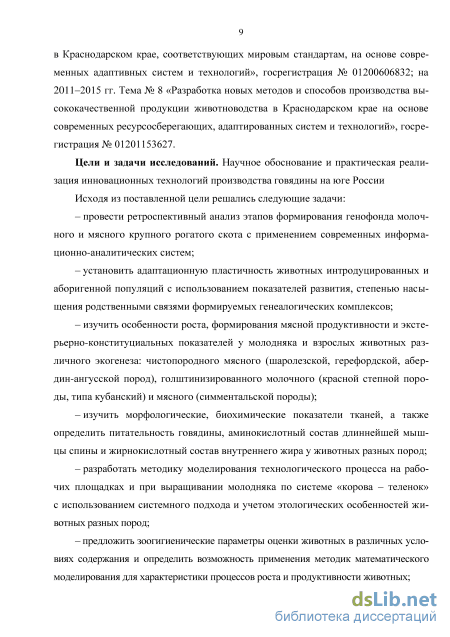 Диссертационная работа выполнена в рамках реализации программ: федеральной «Государственная программа развития сельского хозяйства и регулирования рынков сельскохозяйственной продукции, сырья и продовольствия на 2013–2020 гг.»; краевой «Развитие мясного животноводства Краснодарского края на 2013–2020 гг.», является частью научно-исследовательских тем Кубанского государственного аграрного университета: на 2005–2010 гг. Тема № 8 «Разработка и научное обоснование путей и методов производства продукции животноводства в Краснодарском крае, соответствующих мировым стандартам, на основе современных адаптивных систем и технологий», госрегистрация № 01200606832; на 2011–2015 гг. Тема № 8 «Разработка новых методов и способов производства высококачественной продукции животноводства в Краснодарском крае на основе современных ресурсосберегающих, адаптированных систем и технологий», госрегистрация № 01201153627.