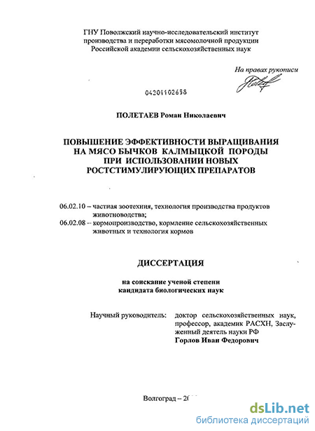 Апробация работы. Основные положения диссертационной работы докладывались и получили положительную оценку на международной научно-практической конференции «Инновационные пути в разработке ресурсосберегающих технологий производства и переработки сельскохозяйственной продукции» (г. Волго град, 2010); на международной научно-практической конференции «Инновационные направления повышения эффективности сельскохозяйственного производства» (г. Оренбург, 2010); на отчете ГНУ НИИММП Россельхозакадемии в Российской сельскохозяйственной академии за 2009-2010 гг.; на расширенном заседании отдела животноводства ГНУ НИИММП Россельхозакадемии (г. Волгоград, 2010).