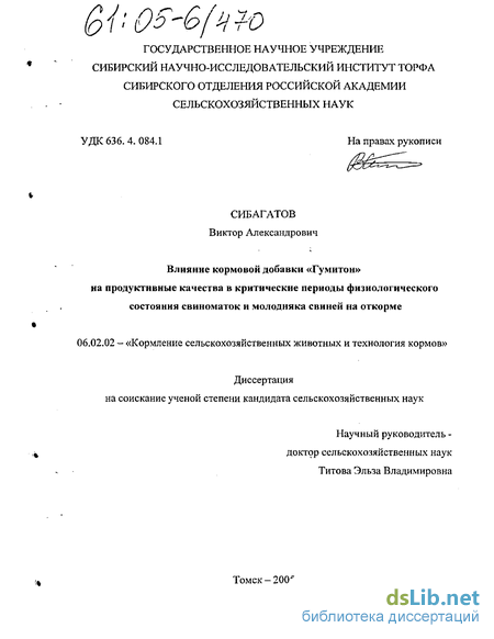 Экспериментальные исследования проводились в подобном хозяйстве ОГУЛПП "Сосновый бор", свинокомплексе "Томский", учебном производственном хозяйстве ФГОУ СПО «Томский сельскохозяйственный техникум» Томской области.
