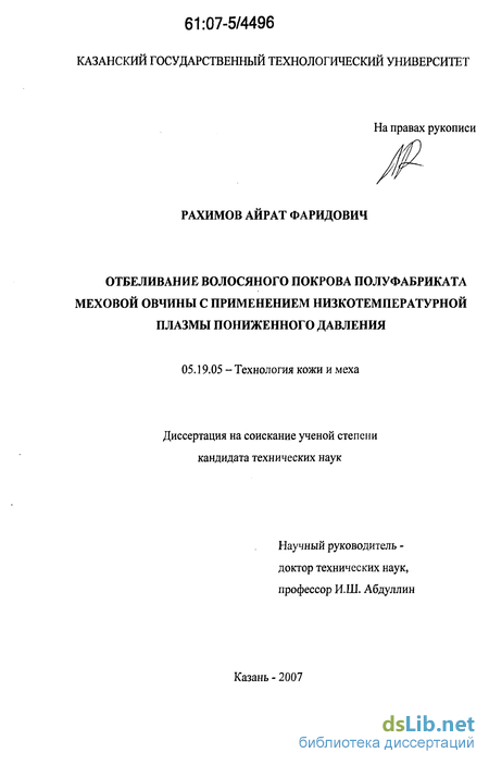 - Разработка технологии отбеливания волосяного покрова меховой овчины с применением ВЧ - плазмы пониженного давления