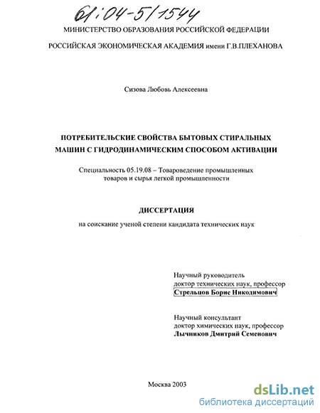 Сизова Любовь Алексеевна. Потребительские свойства бытовых стиральных машин с гидродинамическим способом активации : Дис. ... канд. техн. наук : 05.19.08 : Москва, 2003 150 c. РГБ ОД, 61:04-5/1544
