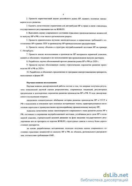 Целью диссертационного исследования является оценка перспектив развития рынка и производства инфузионных растворов на территории РФ в период до 2020 года.
