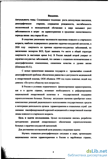 Цель и задачи исследования. Целью исследования явилась разработка методических решений лекарственного обеспечеши геронтологических больных с сердечно-сосудистой патологией.