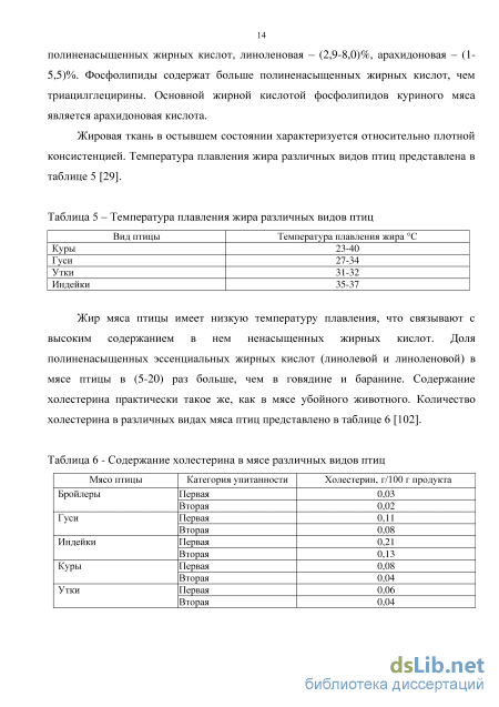 В отличие от мяса сельскохозяйственных животных соединительная ткань птицы менее развита. В тушках птицы содержится в 2 раза меньше соединительной ткани (6-7%), чем в тушах убойных животных [41].