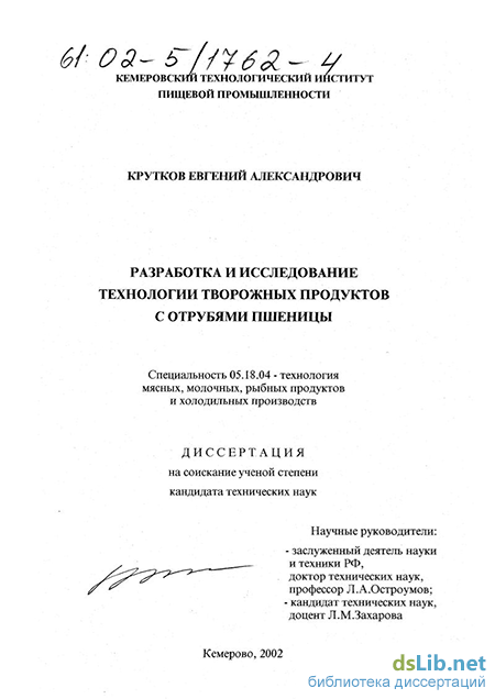 3.4. Уточнение отдельных технологических параметров получения творожных продуктов с пшеничными отрубями 67