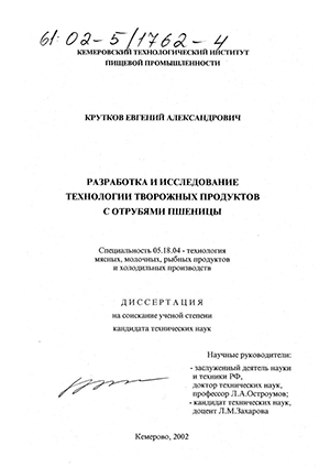 - Исследование состава пшеничных отрубей в связи с их использованием при выработке молочных белковых продуктов