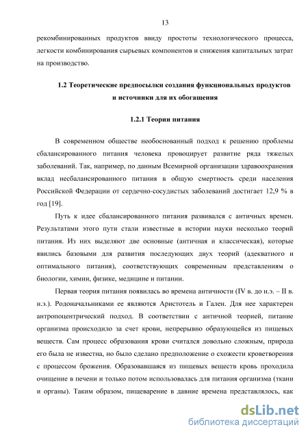 1.2.1 Теории питания 13