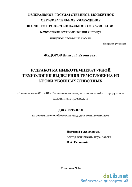 Таким образом, разработка эффективной и энергосберегающей технологии выделения очищенного гемоглобина из крови убойных животных является актуальной задачей пищевой промышленности.
