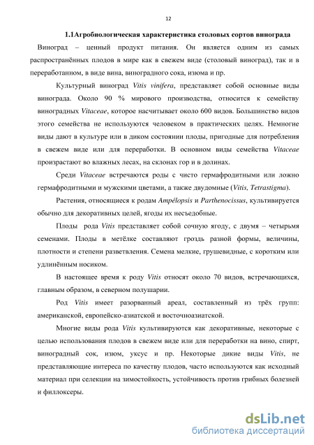 1.1 Агробиологическая характеристика столовых сортов винограда 11