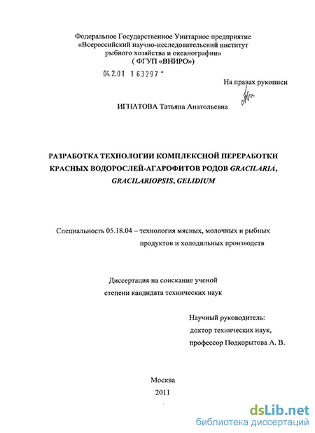 Актуальность работы. Морские красные водоросли-агарофиты незаменимое сырье для производства агара - гелеобразующего, ограниченно набухающего гидроколлоида. С 1882 г. благодаря своим уникальным свойствам агар является незаменимым веществом, используемым при создании питательных сред, применяемых в микробиологии для культивирования и идентификации микроорганизмов, в том числе жизненно опасных. Его широко применяют в пищевой промышленности в качестве гелеобразователя и до настоящего времени полноценной замены этому уникальному полисахариду еще не найдено.