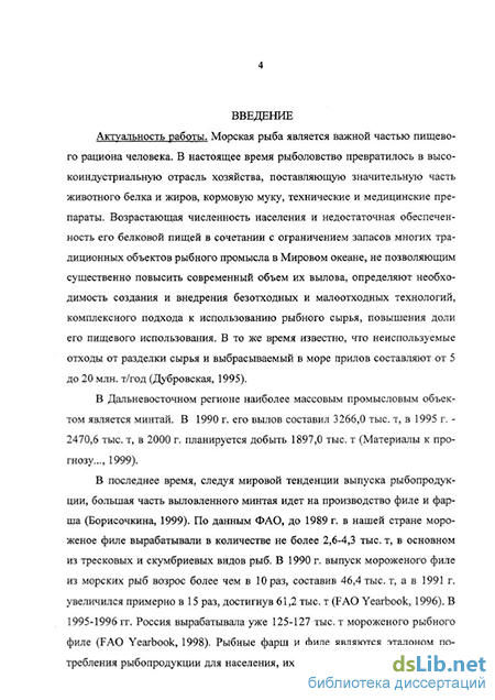 В последние годы наблюдается сокращение объемов вылова минтая, поэтому комплексный подход к использованию рыбного сырья, интенсификация производства за счет экономии сырьевых ресурсов путем