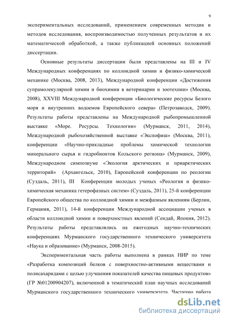 Основные результаты диссертации были представлены на III и IV Международных конференциях по коллоидной химии и физико-химической механике (Москва, 2008, 2013), Международной конференции «Достижения супрамолекулярной химии и биохимии в ветеринарии и зоотехнии» (Москва, 2008), XXVIII Международной конференции «Биологические ресурсы Белого