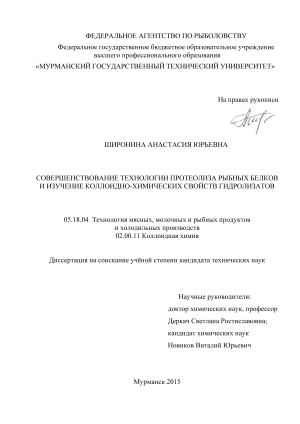 Методология и методы исследования. Методологической основой диссертации служат опубликованные труды по проблемам переработки малоценного рыбного сырья и рыбных отходов, а так же общенаучные подходы изучения кинетики ферментативного гидролиза рыбных белков и коллоидно-химических свойств белковых гидролизатов.