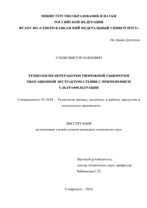состава компонентами растительного сырья (Stevia rebaudiana Bertoni) с последующей ультрафильтрацией пока недостаточно для разработки комплексной технологии пищевых продуктов и молочных напитков, что и обуславливает актуальность и целесообразность проведения собственных исследований.