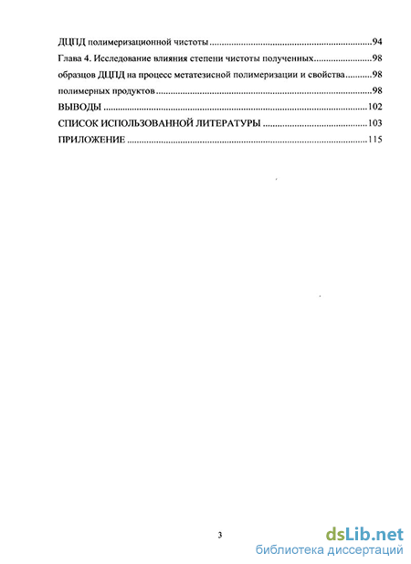 Глава 4. Исследование влияния степени чистоты полученных образцов ДЦПД на процесс метатезисной полимеризации и свойства полимерных продуктов 98