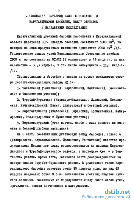 1. Состояние сырьевой базы коксования в карагандинском бассейне, выбор объектов и направления исследований 9