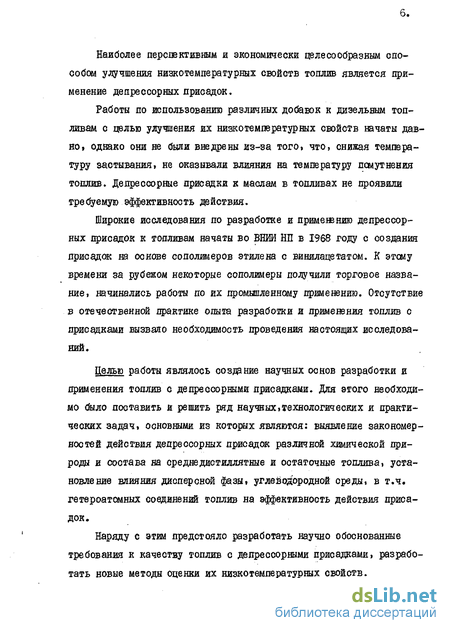 Работы по использованию различных добавок к дизельным топ-ливам с целью улучшения их низкотемпературных свойств начаты давно» однако они не были внедрены из-за того» что, снижая температуру застывания, не оказывали влияния на температуру помутнения тошшв. Депрессорше присадки к маслам в топливах не проявили треоуемую эффективность действия.