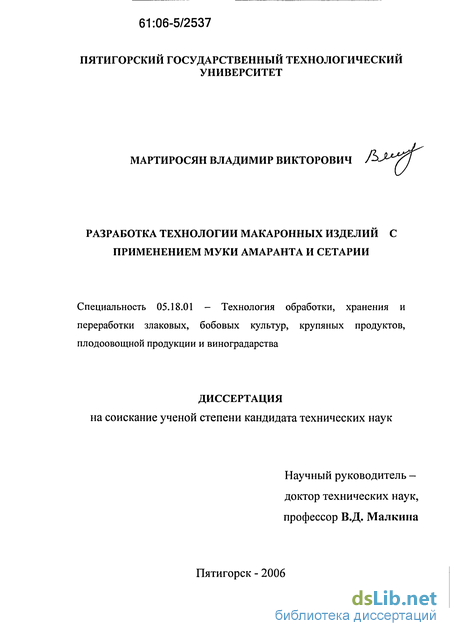 Разработан проект нормативной документации (ТУ, РЦ, ТИ) на макаронные изделия «Пятигорские» из композитной смеси, содержащей цельносмолотую муку амаранта и цельносмолотую муку сетарии.