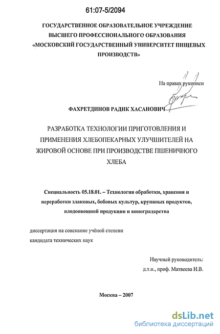 2.4.1.1. Научные предпосылки создания хлебопекарных улучшителей на жировой основе 66