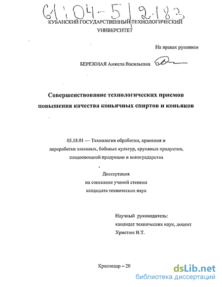3 Экспериментальная часть Научные предпосылки для разработки новой технологии коньячных спиртов и коньяков 49