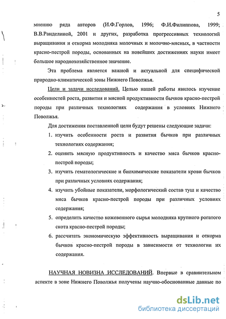 НАУЧНАЯ НОВИЗНА ИССЛЕДОВАНИЙ. Впервые в сравнительном аспекте в зоне Нижнего Поволжья получены научно-обоснованные данные по эффективности доращивания и откорма,убойным показателям, качеству мяса и кожевенного сырья бычков красно-пестрой породы при разных технологиях содержания.
