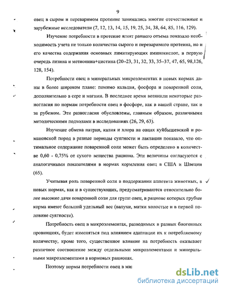 Для характеристики физиологических процессов, необходимых для жизнедеятельности растущего организма, важную роль играет изучение белкового обмена. Потребность растущих овец в сыром и переваримом протеине включает в себя затраты азотистых веществ на обеспечение всех процессов, необходимых для жизнедеятельности организма, в том числе затраты на рост шерсти (53, 65).