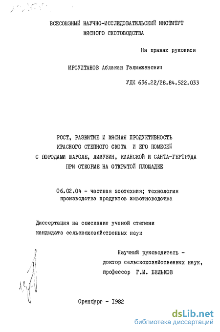 НАУЧНАЯ НОВИЗНА. Впервые проведено исследование по откорму чистопородных и помесных бычков на первой в стране эксперимен тальной открытой площадке на 20 тыс, скотомест. Изучена сравнительная приспособленность бычков к промышленной технологии. Определена экономическая эффективность откорма на промышленной основе красного степного скота и его помесей с породами шароле, лимузин, киан и санта-гертруда,
