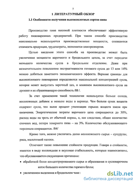 Обеспечить огромные объемы производства пива и соблюсти при этом классическую технологию производства крайне сложно. Многие зарубежные и отечественные производители переходят на изготовление пива по технологии высокоплотного пивоварения. Суть заключается в приготовлении сусла с высоким содержанием сухих веществ 14 — 23%, его сбраживание, дображивание и разбавление готового высокоплотного пива специально подготовленной водой до стандартной концентрации начального сусла. /105/. С другой стороны сохранение качественных характеристик готового продукта, приготовленного по новой технологии, является важнейшим вопросом. Покупатель очень чутко реагирует на изменение привычных потребительских свойств продукта, в первую очередь на изменение вкусовых характеристик.