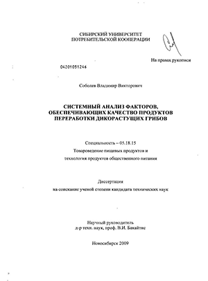 Вместе с тем для обеспечения качества продукции из дикорастущего пищевого сырья, в том числе грибов необходимо рассмотрение технологических процессов с позиции системного подхода, что подтверждает актуальность и своевременность диссертационной работы.