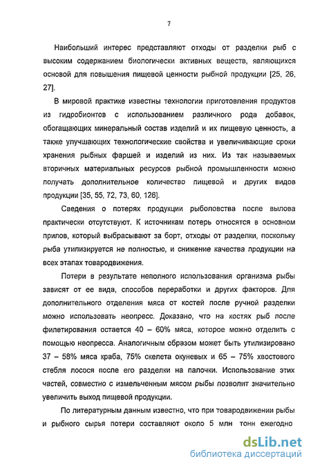 В мировой практике известны технологии приготовления продуктов из гидробионтов с использованием различного рода добавок, обогащающих минеральный состав изделий и их пищевую ценность, а также улучшающих технологические свойства и увеличивающие сроки хранения рыбных фаршей и изделий из них. Из так называемых вторичных материальных ресурсов рыбной промышленности можно получать дополнительное количество пищевой и других видов продукции [35, 55, 72, 73, 60, 126].