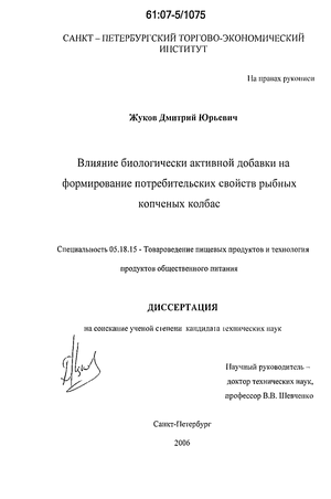 - Разработка методики проведения органолептической оценки качества рыбной копченой колбасы