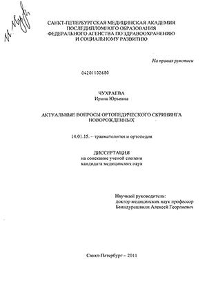 Внедрение Материалы диссертации используются в учебном процессе кафедры детской травматологии и ортопедии Санкт-Петербургской медицинской академии последипломного образования.