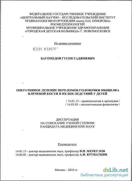 Работа основана на анализе 550 клинических наблюдений переломов ГМПК и их последствий у детей: 433- наблюдений острой травмы и 117 - последствий при осложненном течении. Из них 180 наблюдений в клинике детской травмы Центрального института травматологии и ортопедии (ЦИТО), 370 наблюдений в травматологическом отделении городской детской больницы города Новомосковска, Тульской области (главный врач А.И. Раева). Проанализированы 350 наблюдений архивного материала за период с 1970 по 2008, 200 случаев из собственной практики.