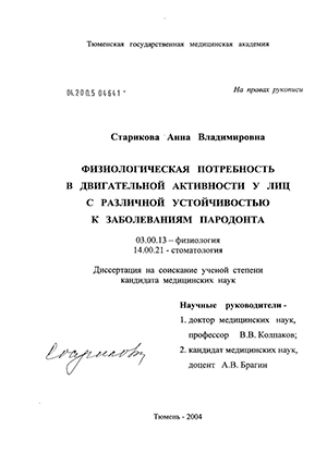 Движение является важнейшим проявлением целенаправленной деятельности человека (К. В. Судаков, 1998), а его здоровье в значительной степени определяется уровнем функциональных возможностей (А.И. Журавлева, 2002; ИЛ. Иванов, 2002; БА. Поляев, 2002). Однако параметры физиологической активности, обеспечивающие оптимальный эффект, строго индивидуальны. Неадекватные изменения общего объема двигательной активности - как гипо- так и гиперкинезия, могут существенным образом влиять на устойчивость организма к различным видам патологии, в том числе приводить к значительным изменениям в органах и тканях зубочелюстной системы (В.М. Семенюк, 1988; И.В. Струев, 1998; А.В. Брагин, 1999; Р.В. Тазиев с соавт., 2002; И.Н. Антонова с соавт., 2003).