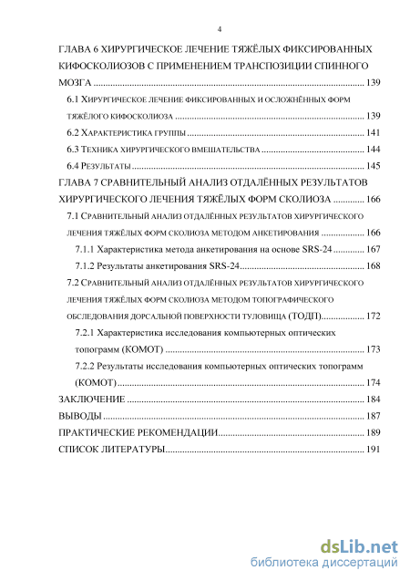 ГЛАВА 7 Сравнительный анализ отдалённых результатов хирургического лечения тяжёлых форм сколиоза 166