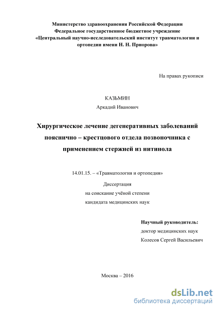 1.1 Клинические аспекты и обоснование хирургического лечения дегенеративных заболеваний поясничного отдела позвоночника 11