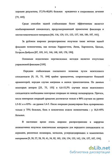 Остаётся проблема необходимости полной или частичной редукции смещенных позвонков при операциях по поводу спондилолисте-за Некоторые авторы (Д И Глазырин. 1981; НИ Хвисюк. А С Чи-кунов, А К Арсений, 1986; А И Швец, Г И Фадеев, 1990; М Aebi. J.S Thalgott, J К Webb, 1998; WT. Dick, B. Schnebel, 1988; PJ Marchetti, R Binazzi, V Vaccari et al. 1994; W Noack, G Raetzel, 1988) считают необходимым вправление смещенного позвонка перед стабилизацией Другие же не настаивают на полной 100% редукции, (ЕБ. Волков, А.И Продан, 1997; В В Доценко, 2004; ЯЛ Цивьян, 1966, J R Bowen, 1983; К. Zielke, В Pellin, 1975) или считают вправление не нужным, поскольку фиксация "in situ" дает хорошие клинические результаты.
