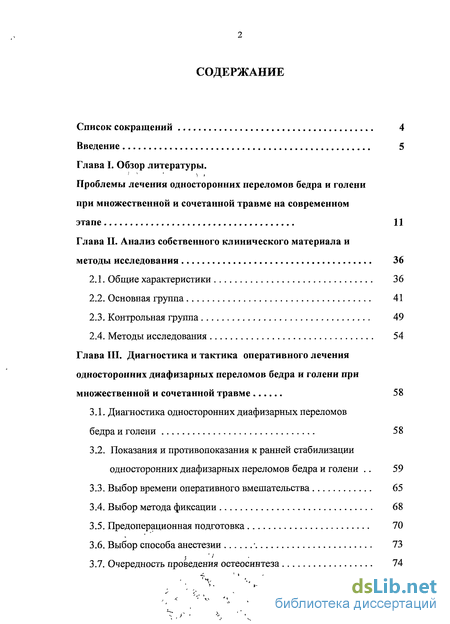 Глава I. Обзор литературы. Проблемы лечения односторонних переломов бедра и голени при множественной и сочетанной травме на современном этапе 11
