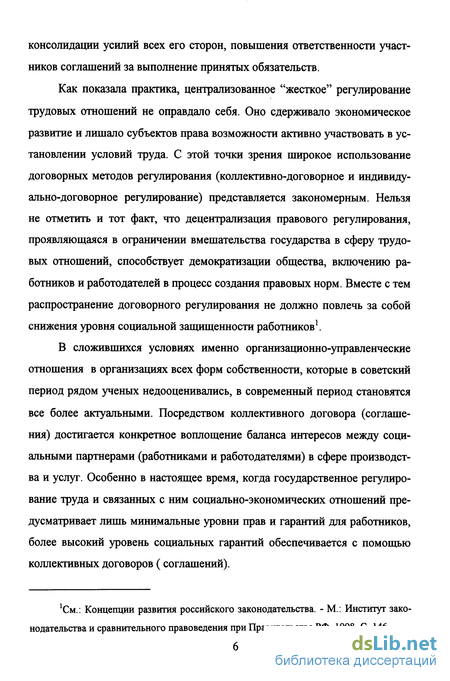 В сложившихся условиях именно организационно-управленческие отношения в организациях всех форм собственности, которые в советский период рядом ученых недооценивались, в современный период становятся все более актуальными. Посредством коллективного договора (соглашения) достигается конкретное воплощение баланса интересов между социальными партнерами (работниками и работодателями) в сфере производства и услуг. Особенно в настоящее время, когда государственное регулирование труда и связанных с ним социально-экономических отношений предусматривает лишь минимальные уровни прав и гарантий для работников, более высокий уровень социальных гарантий обеспечивается с помощью коллективных договоров ( соглашений).