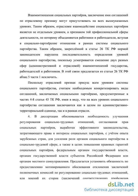 В диссертации обосновывается необходимость улучшения регулирования социально-трудовых отношений, согласования прав социальных партнёров, выработки эффективного законодательства, затрагивающего права и интересы социальных партнёров, с учётом опыта зарубежных стран для усиления роли органов социального партнёрства в социально-трудовой сфере, а также в целях повышения правовых гарантий социальных партнёров федеральными органами государственной власти, органами государственной власти субъектов Российской Федерации и органами местного самоуправления. Предлагается установить обязанность по предоставлению мотивированного обоснования отклонения заключений полномочных комиссий по регулированию социально-трудовых отношений, или мнений их сторон (заключений соответствующих профсоюзов (объединений профсоюзов) и объединений работодателей) по направленным им проектам законодательных актов, нормативных правовых и иных актов органов исполнительной власти и органов местного самоуправления, которые подлежат обязательному рассмотрению федеральными органами государственной власти, органами государственной власти субъектов Российской Федерации и органами местного самоуправления, принимающими указанные акты в случае отклонения указанных заключений соответствующими государственными органами. Данную обязанность предлагается закрепить в ст. 351 ТК РФ, новая редакция которой предложена в диссертации.
