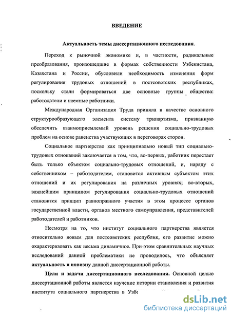 Цели и задачи диссертационного исследования. Основной целью диссертационной работы является изучение истории становления и развития института социального партнерства в Узбекистане, России и Казахстане, анализ общего и особенного в правовом регулировании социального партнерства данных государств на современном этапе развития для формулирования научных положений о системе социального партнерства, а также разработки предложений по совершенствованию трудового законодательства данных государств.